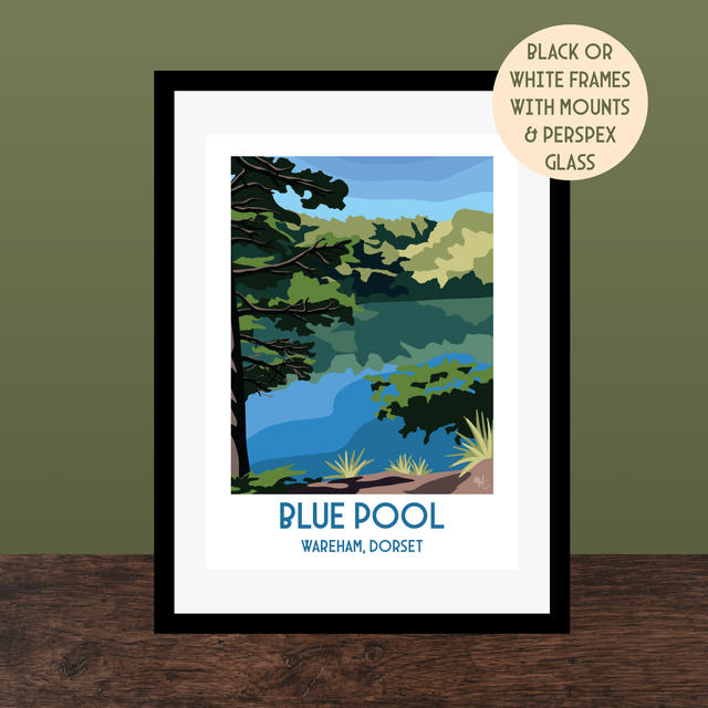 Blue Pool, Travel Poster Print - Vintage Style Dorset Wall Art