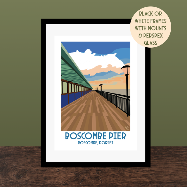 Boscombe Pier, Travel Poster Print - Vintage Style Dorset Wall Art