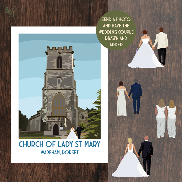 Church of Lady St Mary, Wareham, Personalised Wedding Venue Print