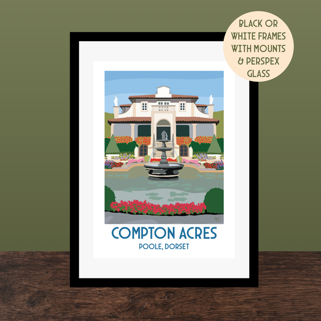Compton Acres, Travel Poster Print - Vintage Style Dorset Wall Art