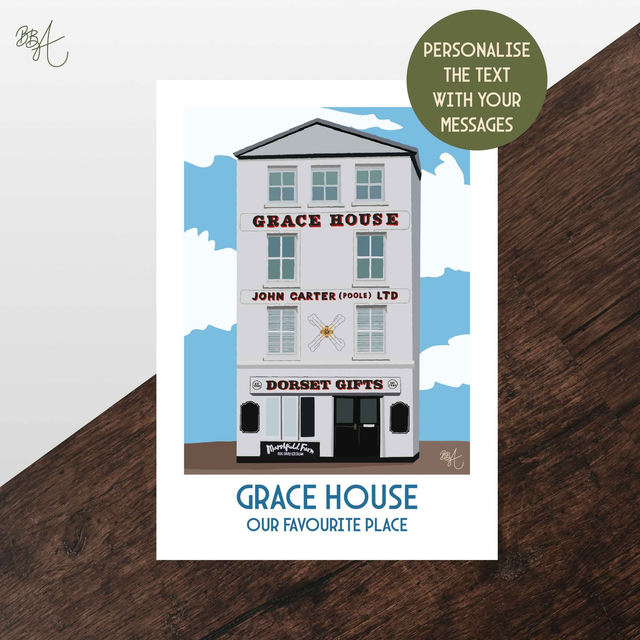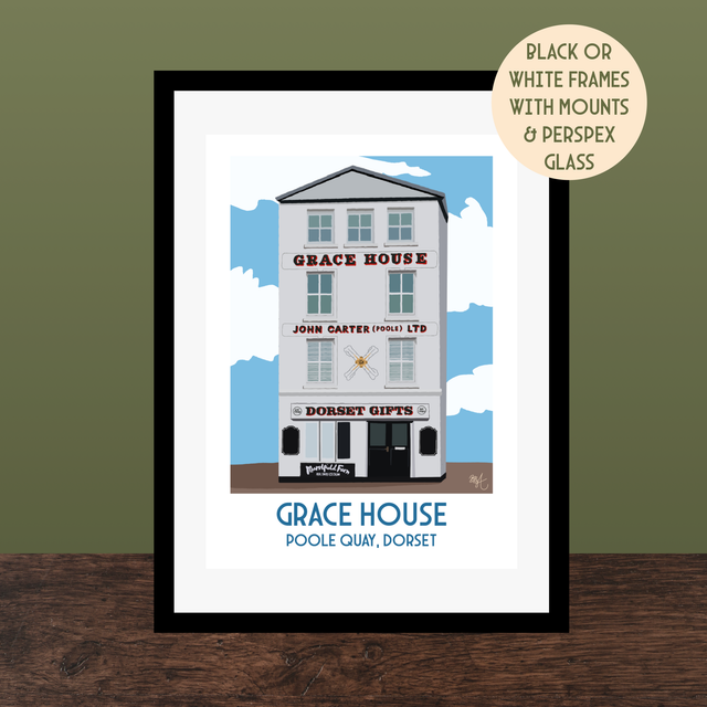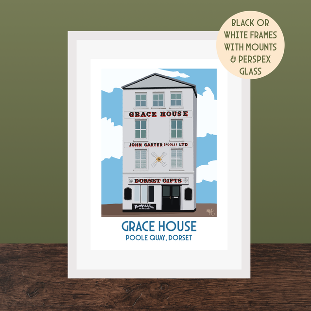 Grace House, Poole Quay, Travel Poster Print - Vintage Style Dorset Wall Art