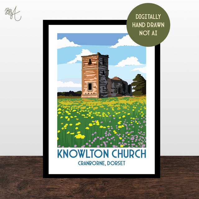 Knowlton Church, Travel Poster Print - Vintage Style Dorset Wall Art