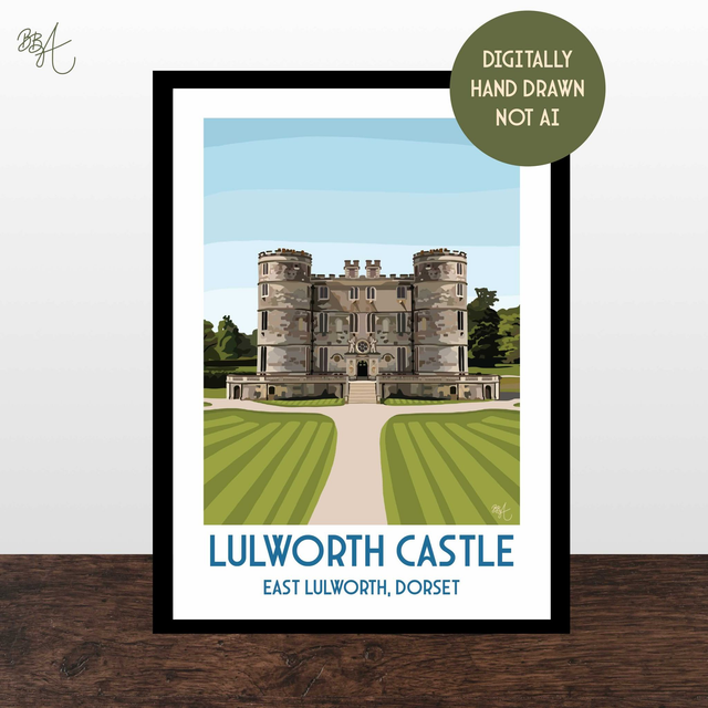 Lulworth Castle, Travel Poster Print - Vintage Style Dorset Wall Art