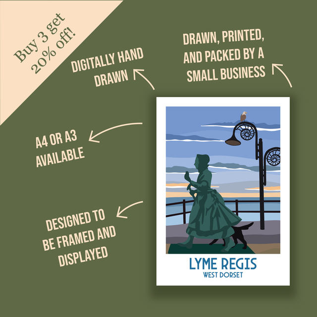 The posters are digitally hand drawn and printed in-house on high-quality 250gsm photographers paper. They are packaged in a biodegradable plastic sleeve and are backed with hardboard so there's no bending or creasing of the print.