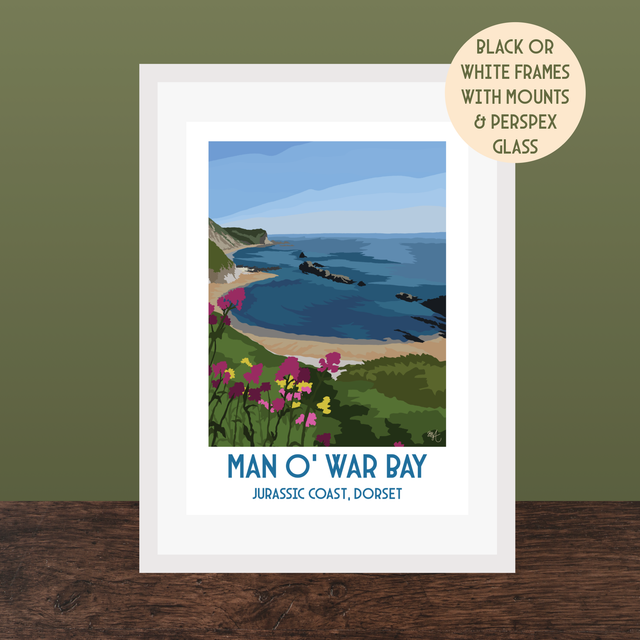 Man O' War Bay, Travel Poster Print - Vintage Style Dorset Wall Art